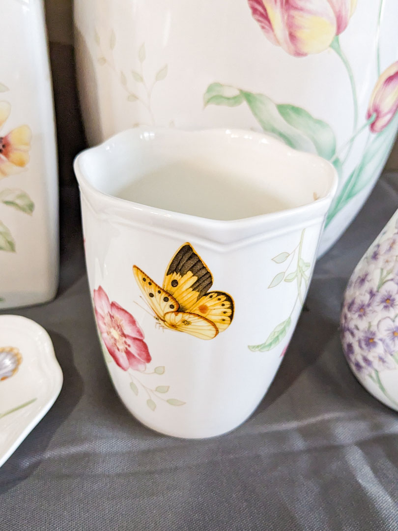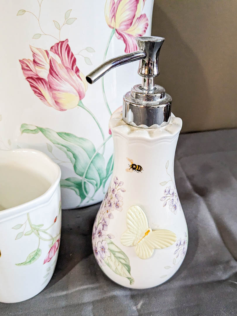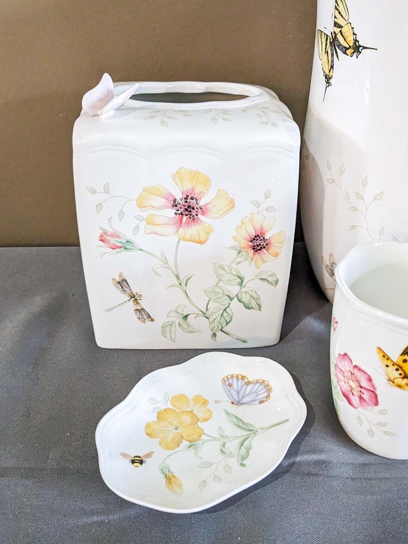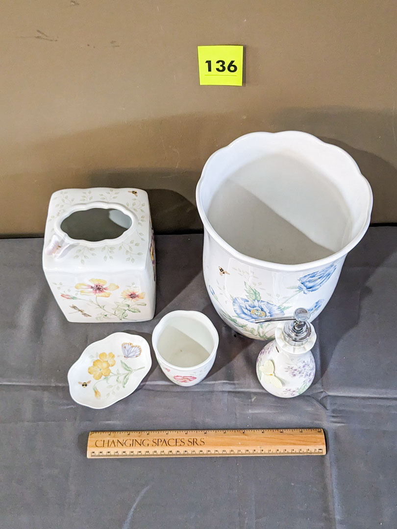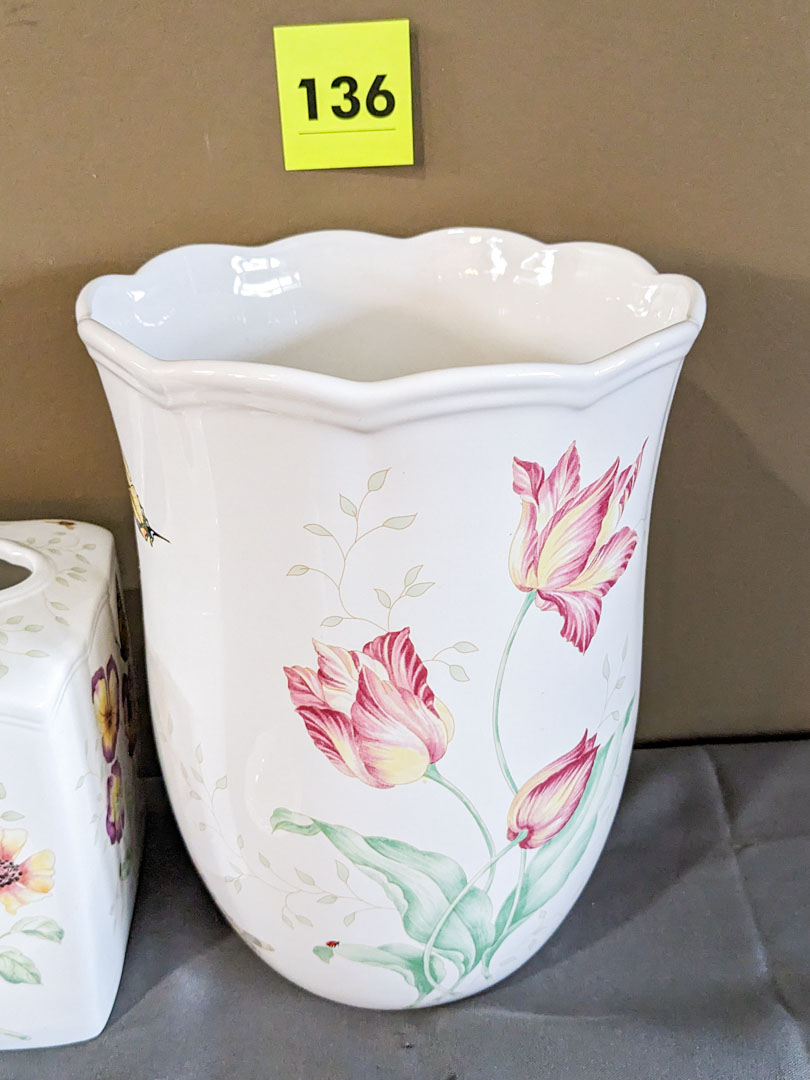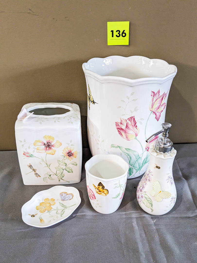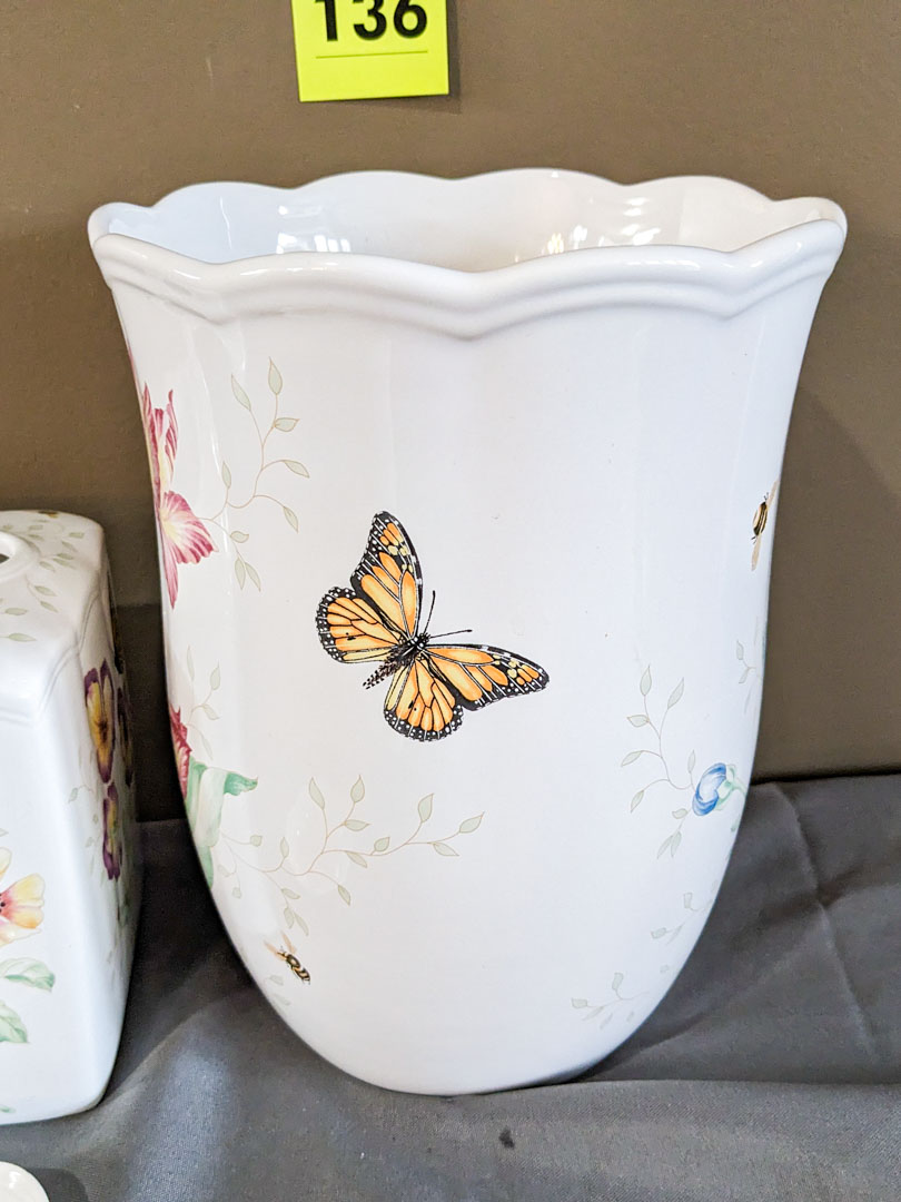 136. Lenox Butterfly Meadow Wastebasket, Tissue Cover + Vanity Pcs.