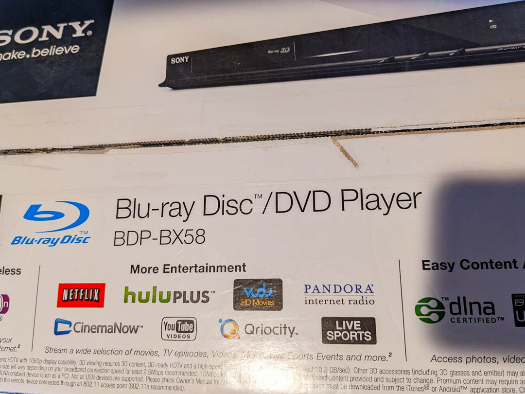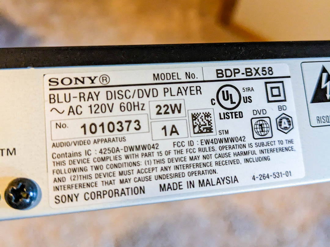 254. SONY BluRay Player (no remote)