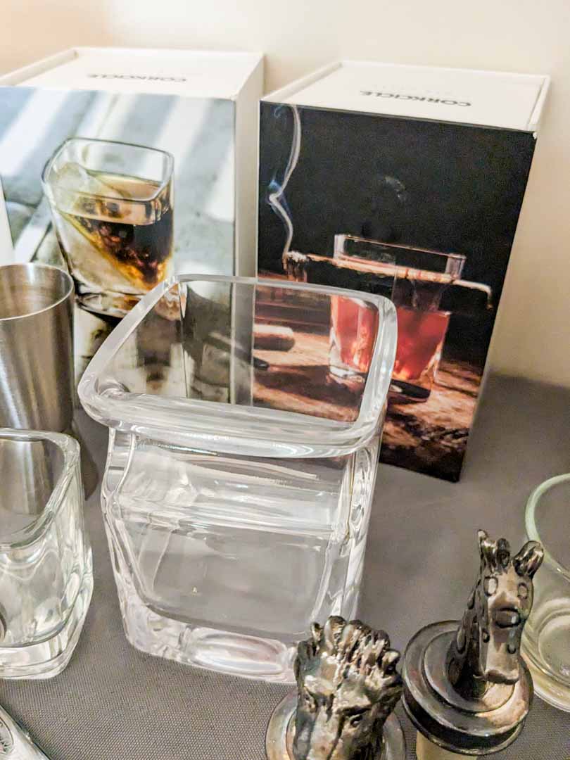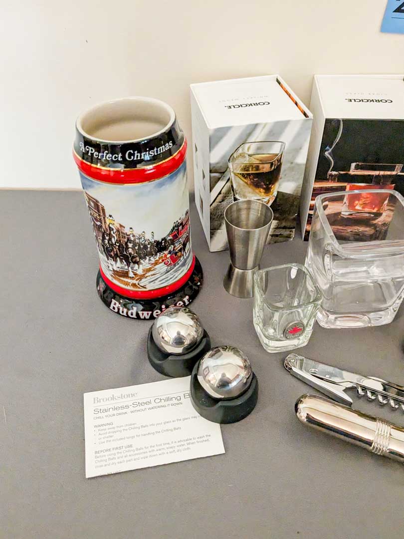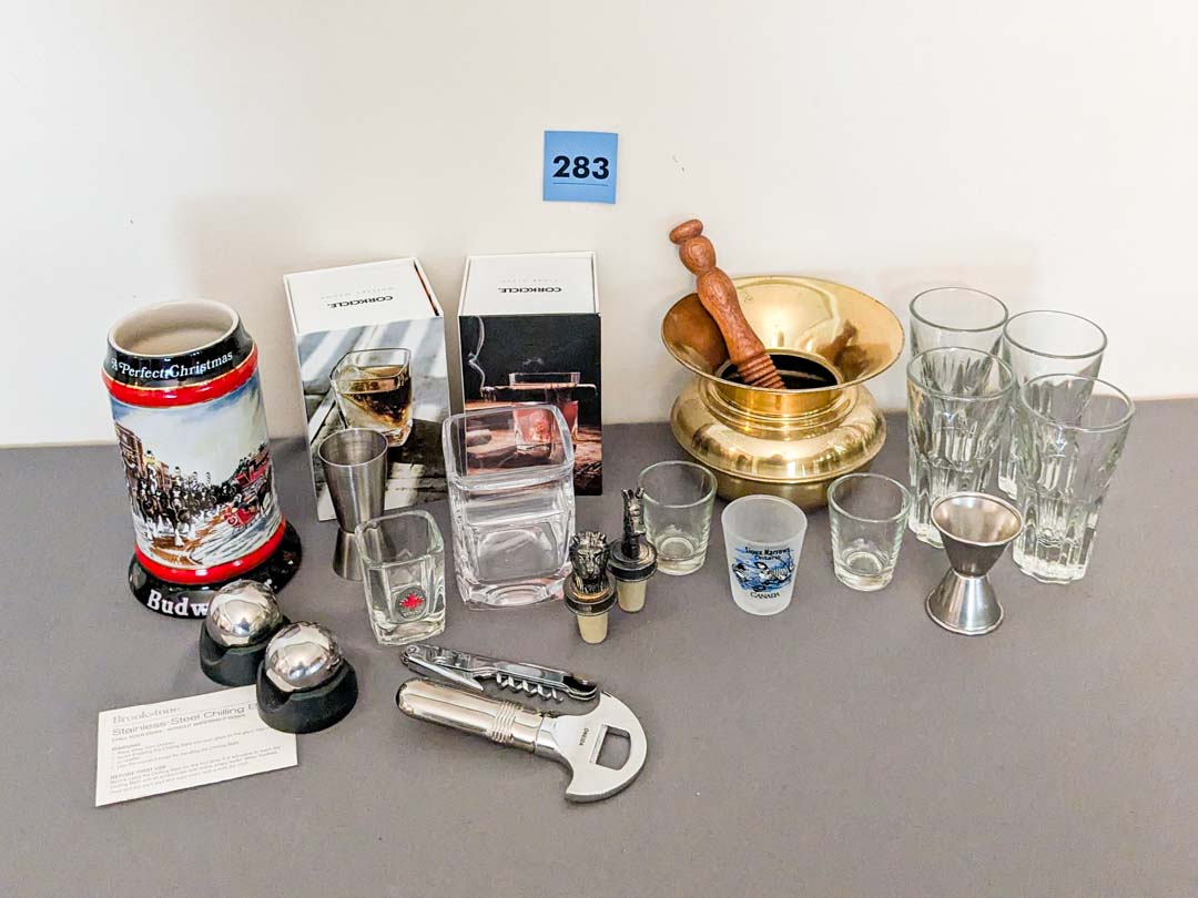 283. (3) Corkcicle Glasses, Beer Stein, Shot Glasses + Bar Accessories