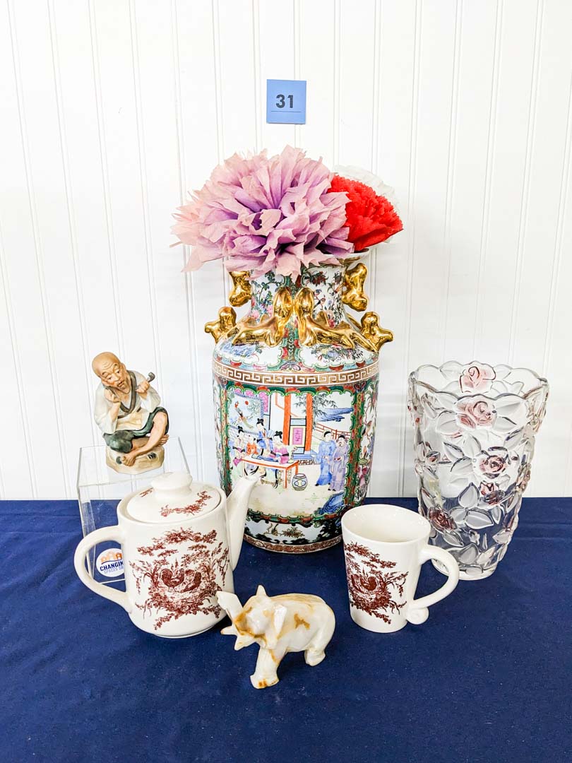 31. 15″ Porcelain Vase + Floral Vase + Teapot + Decor