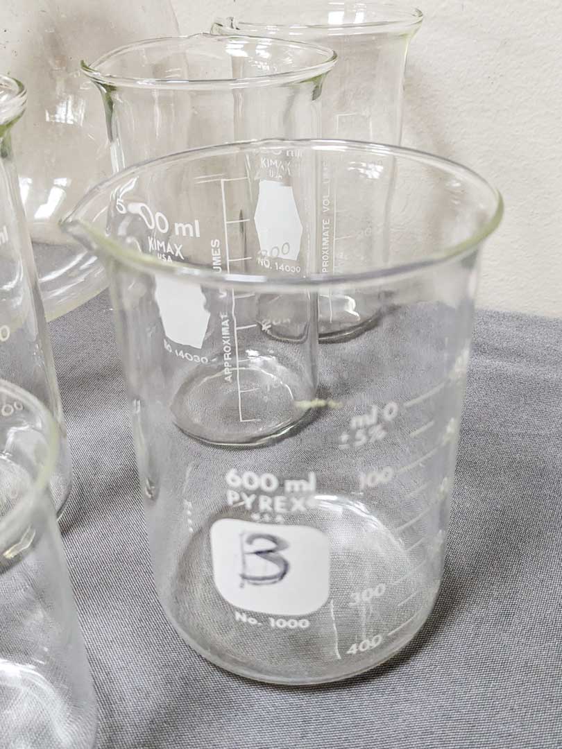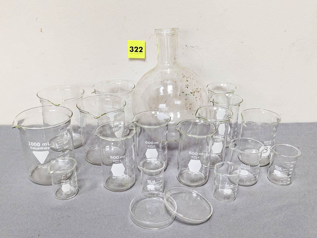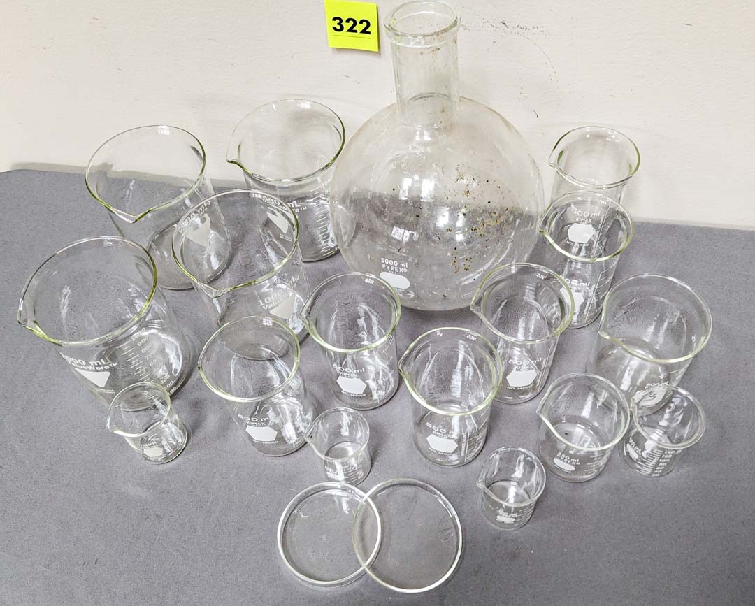 322. Pyrex Beakers + Lab Equipment