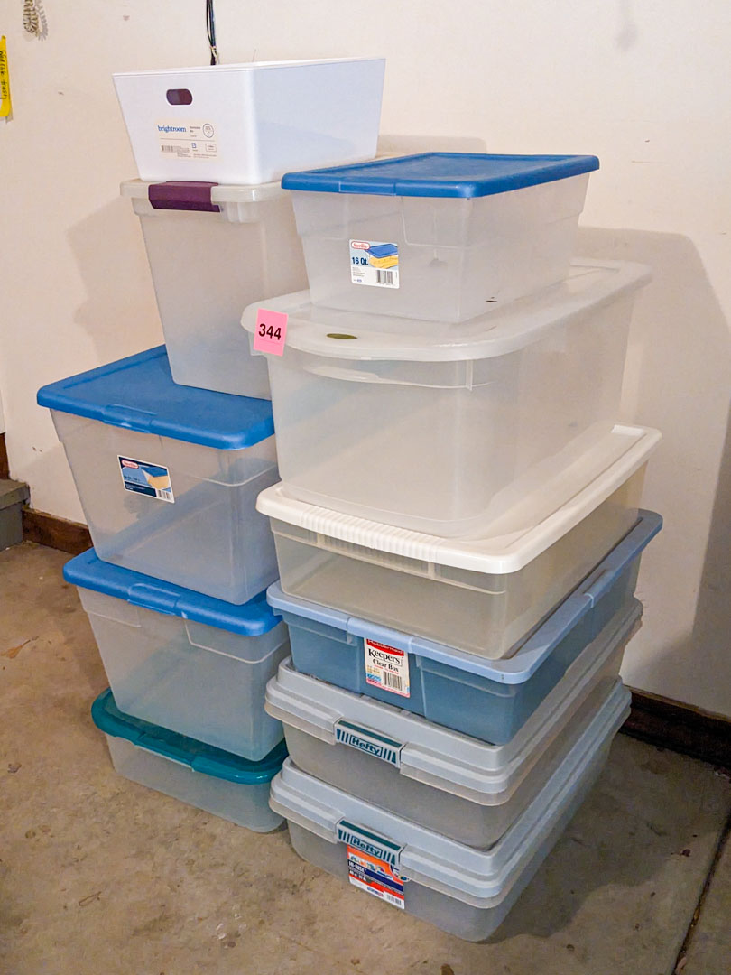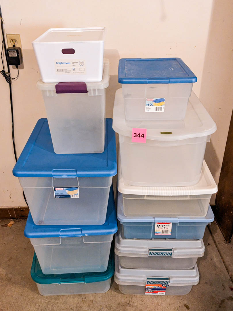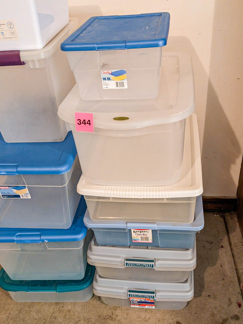 344. (10) Storage Totes + Bin