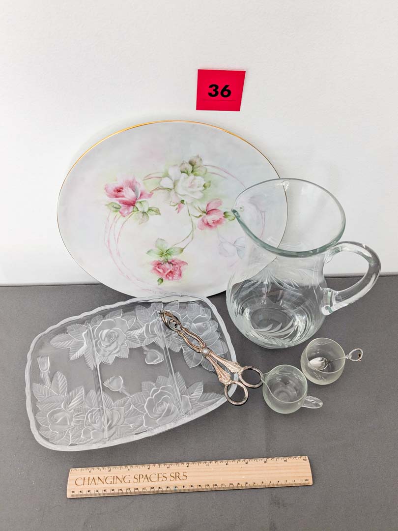 36. 9″ Platter, Divided Dish, Servers, Pitcher, Creamer + Sugar