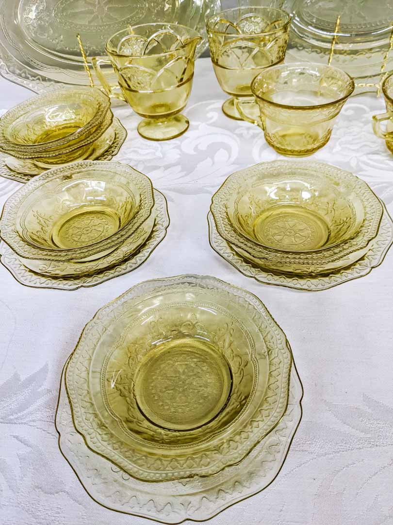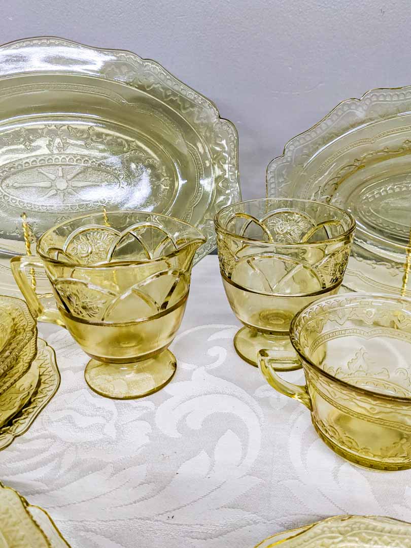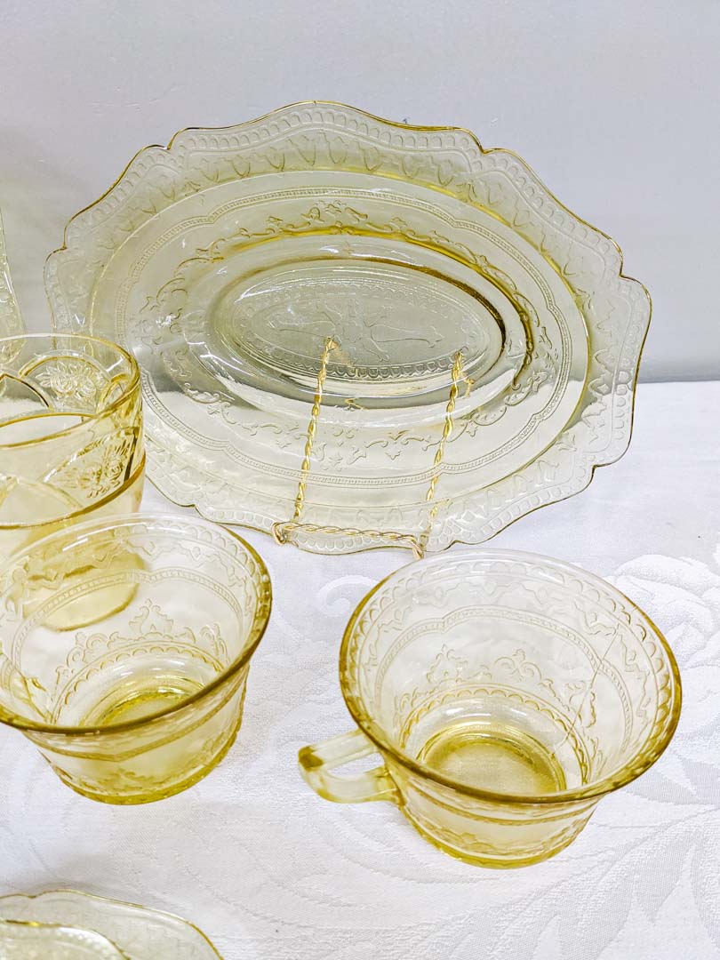 (1) serving bowl, (1) plate, (5) berry bowls, (4) saucers, (2) cups, (1) cream / sugar set