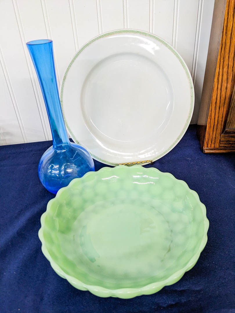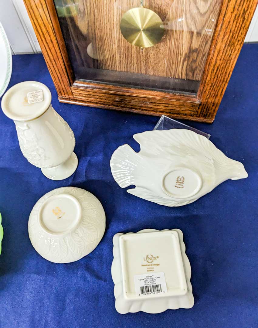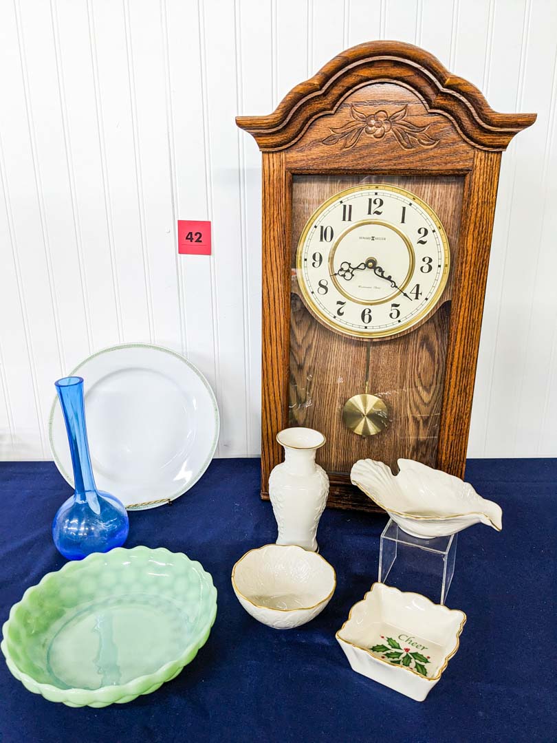 42. Howard Miller Battery Clock + Lenox China + Jadeite Bowl