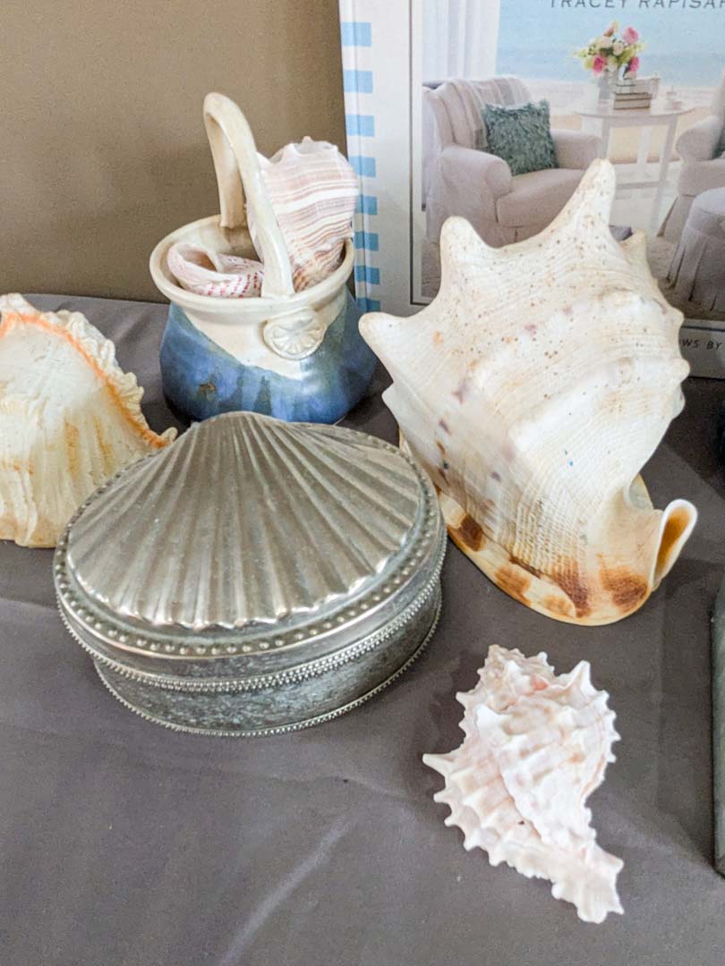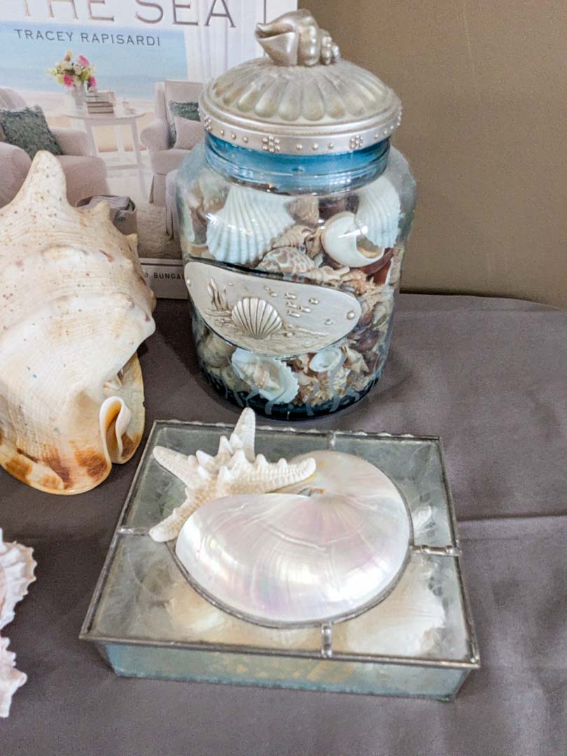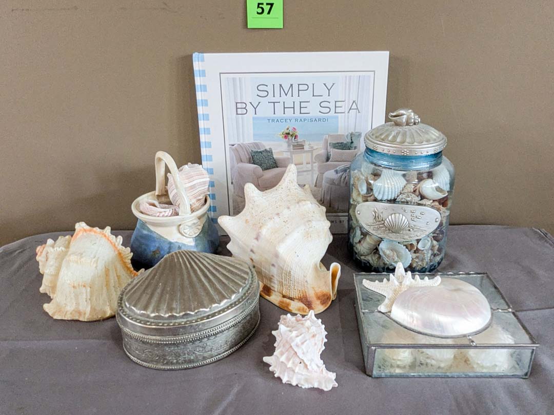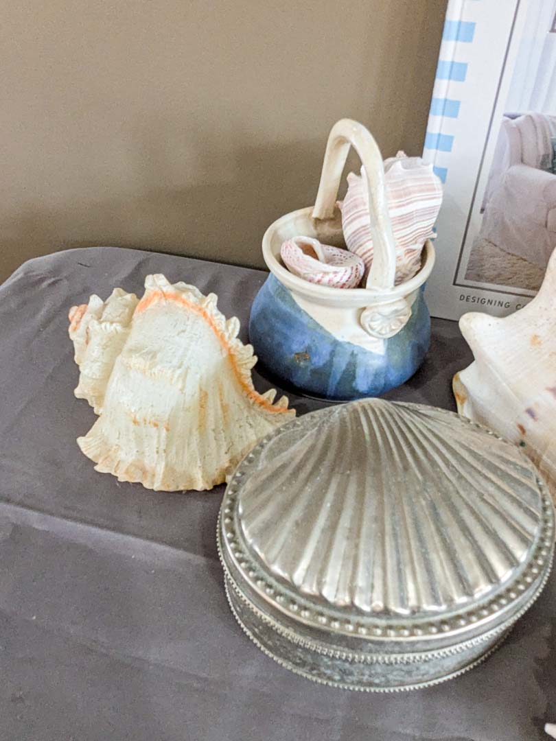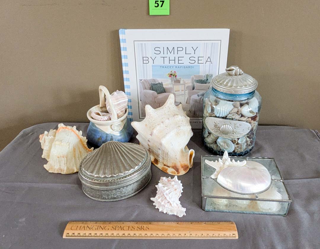57. Shells, Pottery Basket, Jewelry Box + Decor