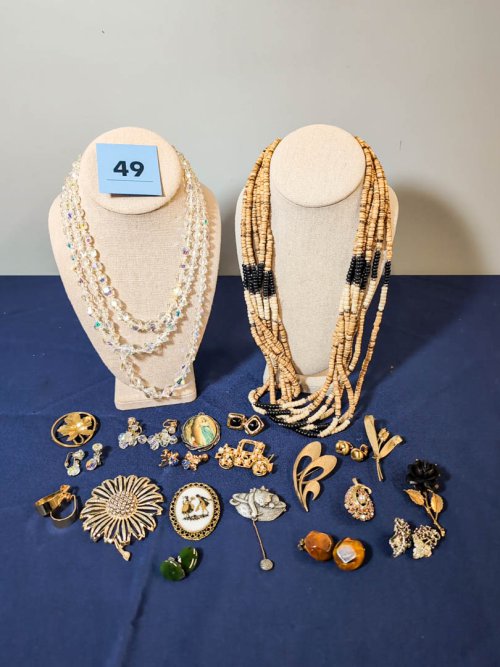 49. Fashion Jewelry (3) Necklaces, (1) Pendant, (9) Brooches, (9) Pairs of Clip-On Earrings