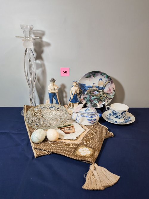 50. Crystal Bowl, Collectible Plate, Stone Eggs, & Decor