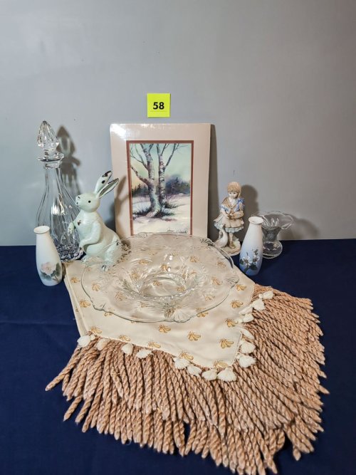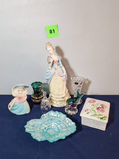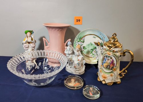 59. Crystal Bowl, Collectible Figurines, Painted Dishes, & Paperweights