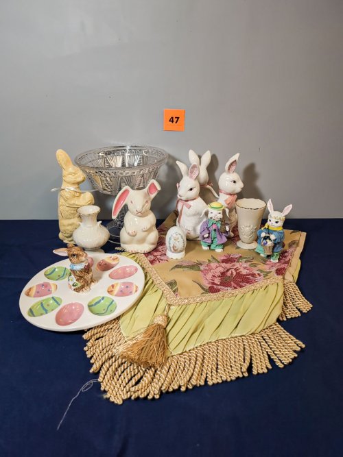 47. Rabbit Planter, Painted Egg Dish, Lenox Vases, & Easter Decor