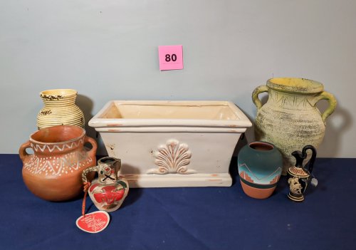 58. Signed Watercolor Painting, Glass Decanter, Porcelain Figurine, Painted Vases, & Decor