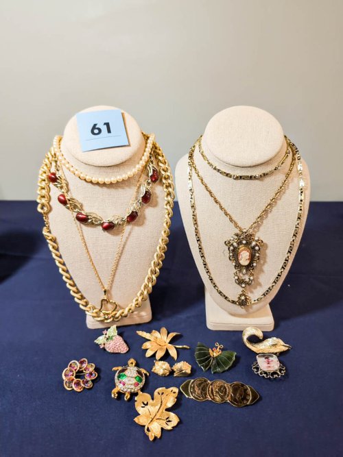 61. Fashion Jewelry (7) Necklaces, (9) Brooches, & (1) Pair of Earrings