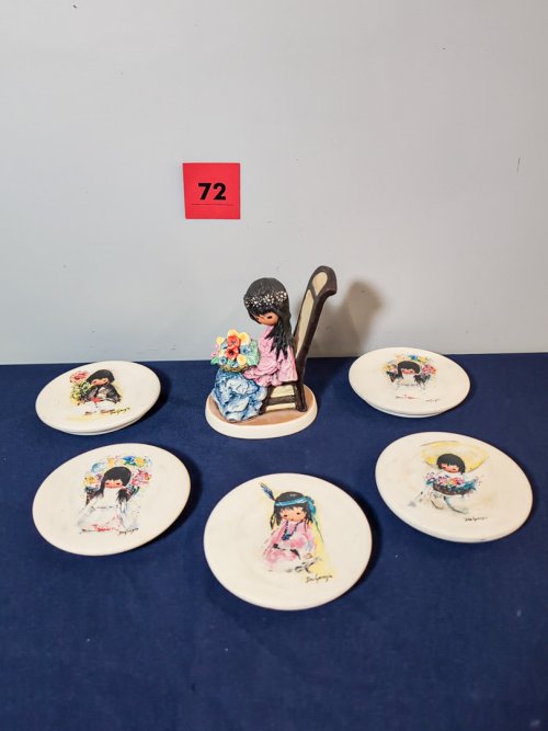 72. DeGrazia “Fiesta Flowers” Figurine & (5) Coasters