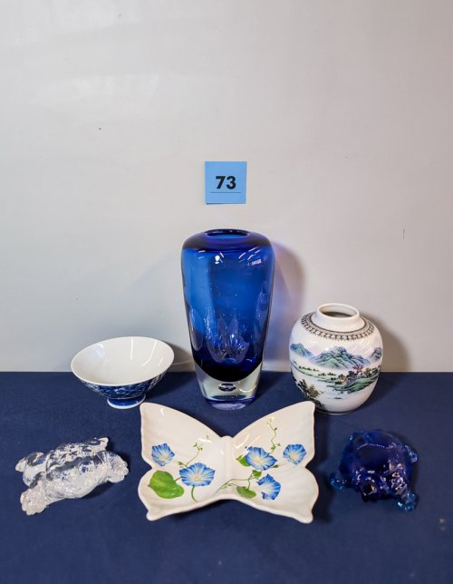 73. Glass Vase, Hand Painted China, & Glass Paperweights