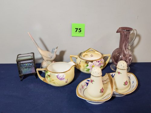 75. Hand Painted Dishes, Collectible Bird Figurine, & Glass Decor