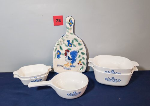78. (5) Corning Ware Dishes & Painted Serving Tray