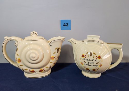 43. Hall Autumn Leaf Shell Teapot & 20th Anniversary Teapot