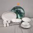 147. Union Pacific Winged Streamliner China – (4) Dinner Plates, (4) Salad Plates, (4) Bread Plates, (4) Soup Bowls, (4) Cereal Bowls, (4) Berry Bowls, (4) Ice Cream Shells, (4) Custard Cups w/ Lids, (4) Serving Trays