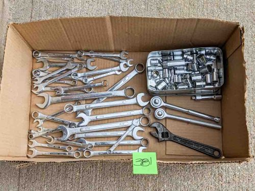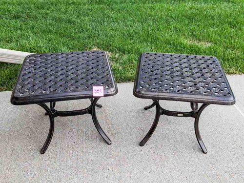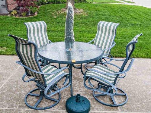 385. Patio Table + (4) Chairs + Umbrella with Stand