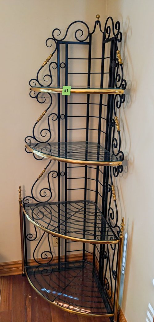 81. Brass + Glass Corner Shelf