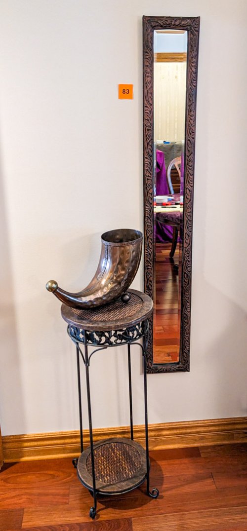 83. Skinny Mirror, Plant Stand + Brass Decor