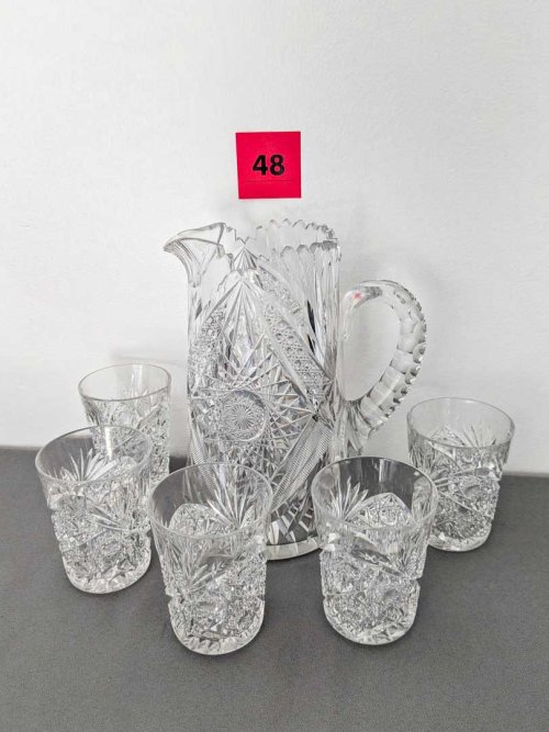 48. Crystal Pitcher + (5) Tumblers