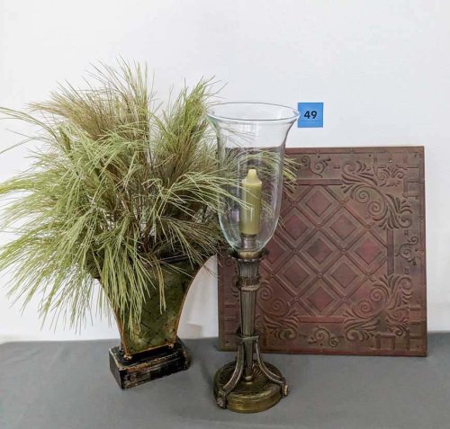 49. Faux Floral, Metal Wall Hanging + Candleholder