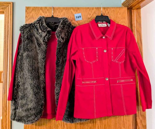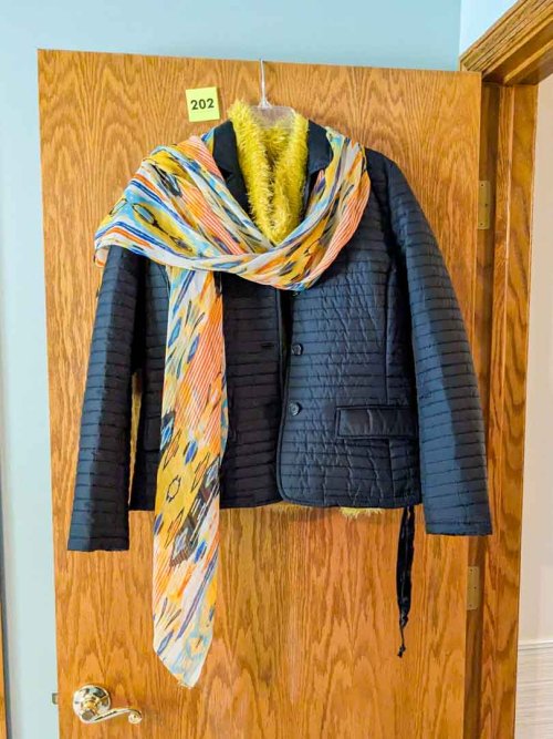 202. (NEW) Sweater, Jacket + Silk Scarf – Size M