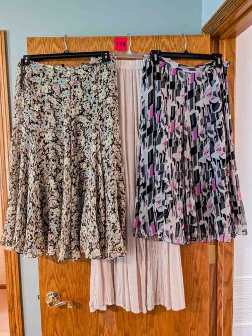 174. (2) Jones New York Silk Skirts – Size 8 + Sheer Skirt – Size M