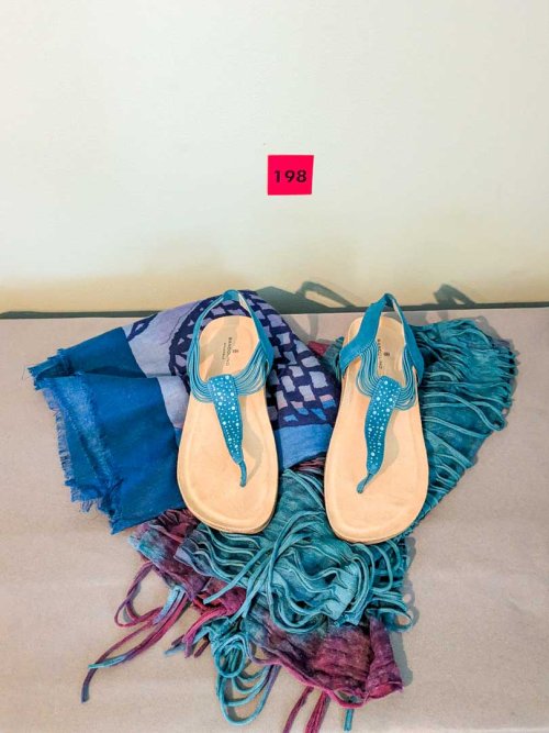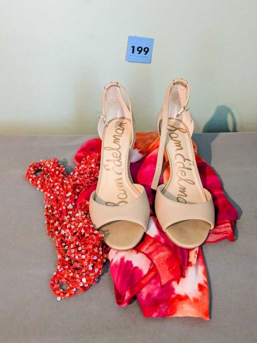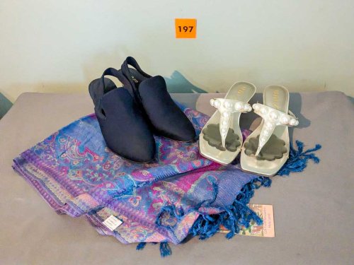 197. Cashmere Scarf, Unisa Heels + Blue Nurture Heels – Size 8