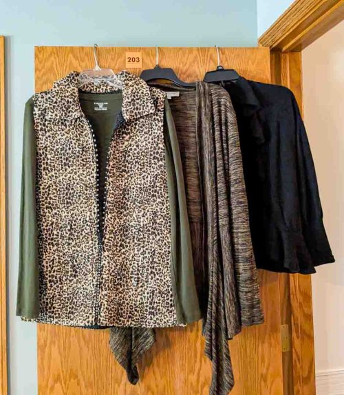 203. (2) Cardigans, Vest + T-Shirt – Size M