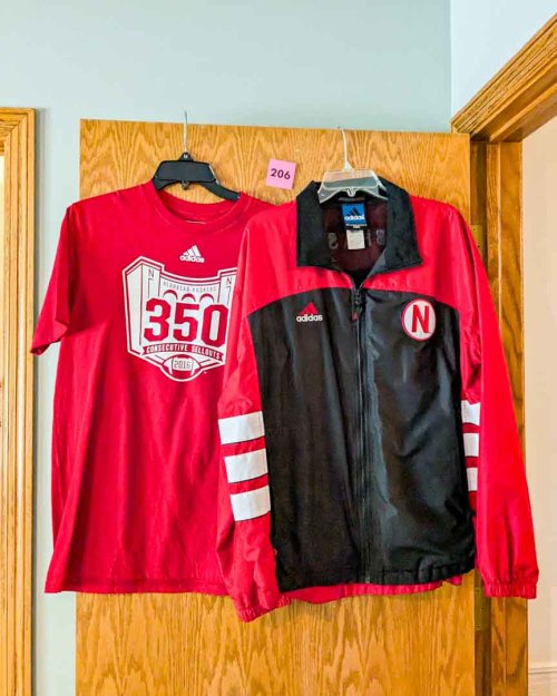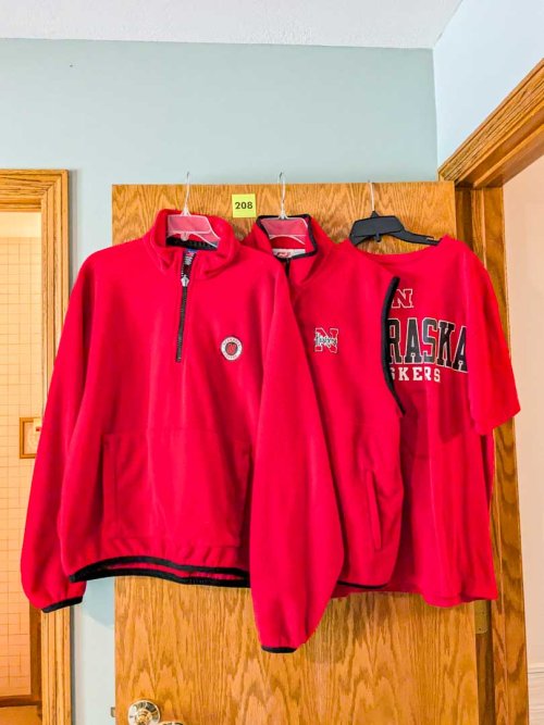 208. Husker Fleece Vest, Zipper Sweatshirt + T-Shirt – Size L