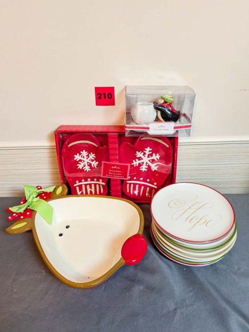 210. (8) Plates, Bowl, Mitten Serving Pcs. + Tealight