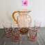 62. Pink Depression Glass Pitcher + (4) Glasses