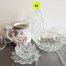 63. Teacup/Saucer, Pink Depression Glass Compote + Bowl and Miniatures
