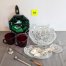 65. Green Depression Glass Bowl, Carnival Glass Bowl, Knife Rests, Bowls + Dishes