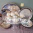 67. (12) Teacups/Saucers, Dessert Plates, (4) Silverplate Trays + (2) Pitchers