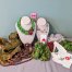 232. Acrylic Stool, (3) Necklaces, Ceramic Lips + (2) Cups, Flower Art