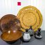 57. (2) Handwoven Baskets, Aztec Metal Plate from Chile, Agates, Crystals, Stones