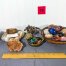 57. (2) Handwoven Baskets, Aztec Metal Plate from Chile, Agates, Crystals, Stones