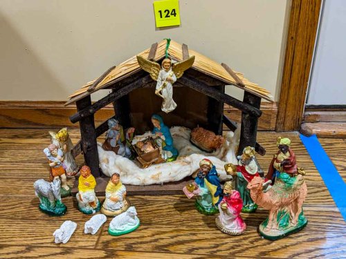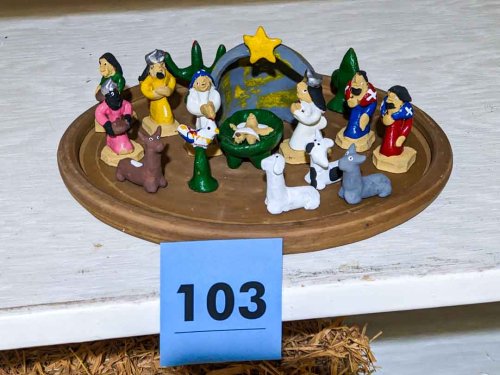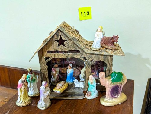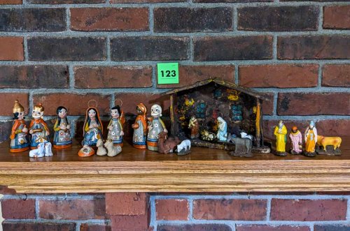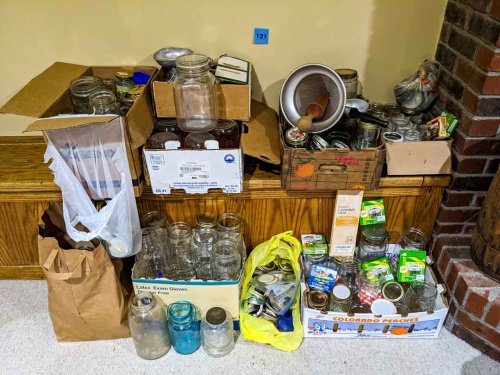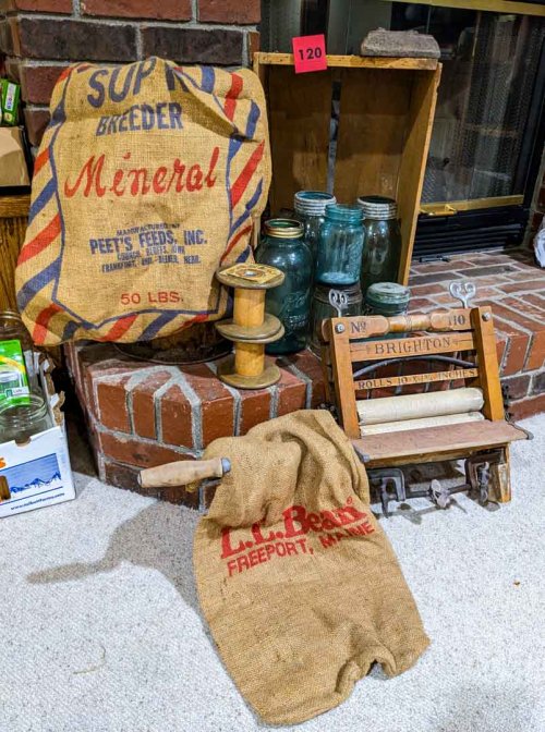 120. Vintage Crate + Nail Keg + Wringer + Spools + Jars