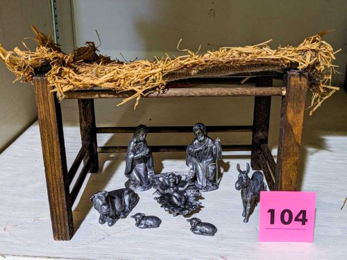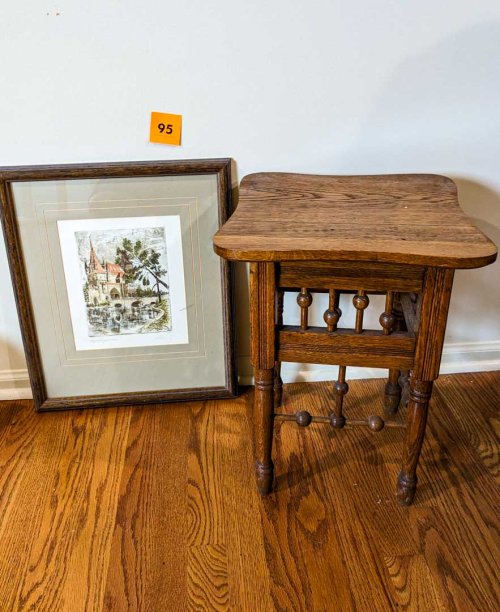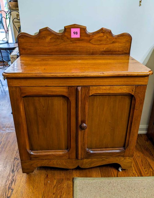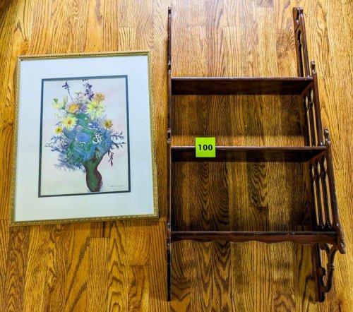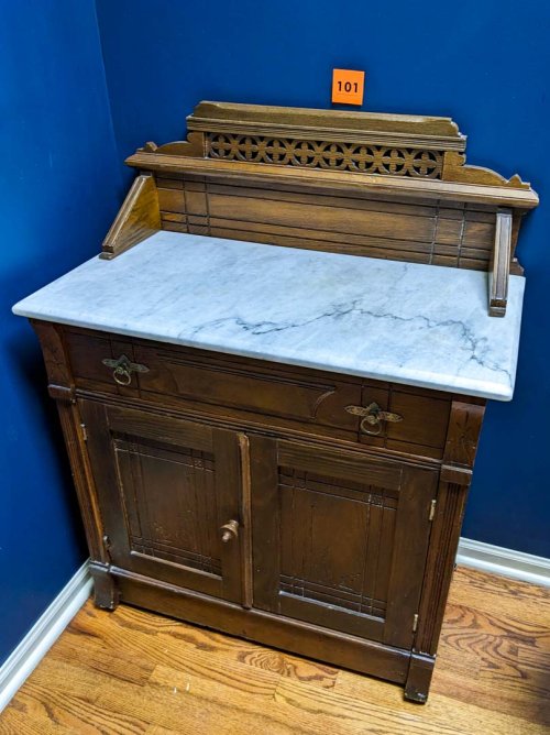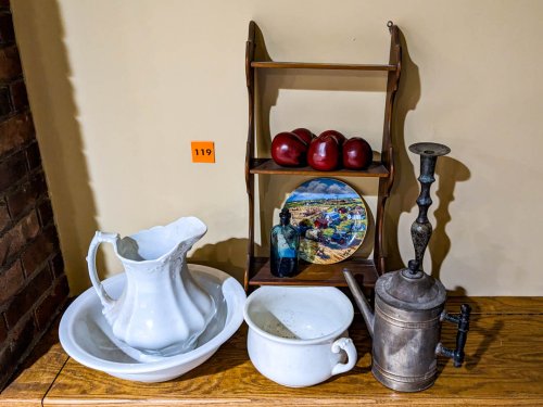 119. Antique Pitcher and Bowl + Chamber Pot + Shelf + Coffee Pot + Candlestick