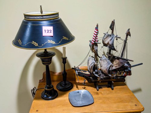 122. Mayflower Replica Ship + Lamp + Etched Plate