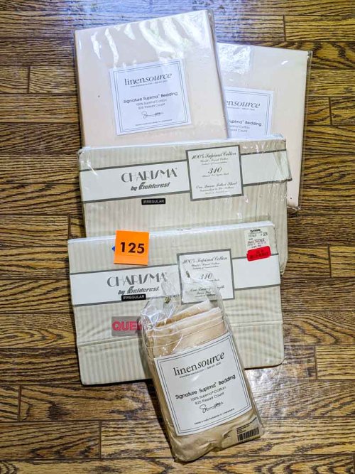 125. (3) Queen Fitted Sheets + Queen Flat Sheet + Pillow Cases