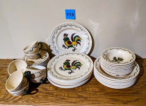 115. Poppy Trail DIsh Set (7) DInner Plates + (8) Fruit Plates + (6) Soup Bowls + (8) Saucers + (8) Cups