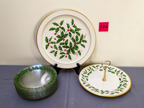 174. Lenox and Serving Dish + (12) Arcoroc France Glass Plates