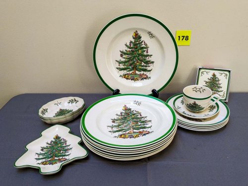 178. Spode Dishes (7) DInner Plates + (4) Salad Plates + (3) Serving Pieces + Cup and Saucer