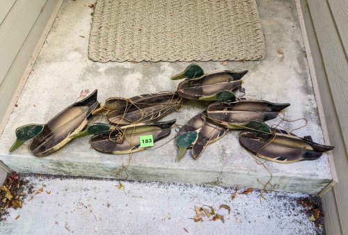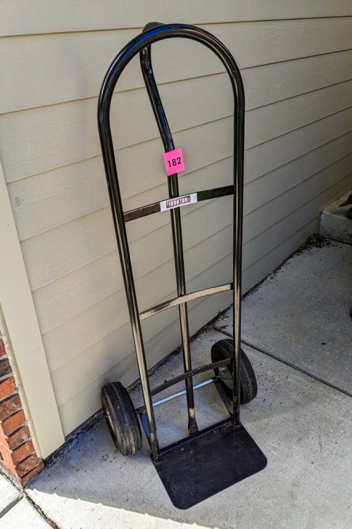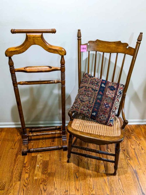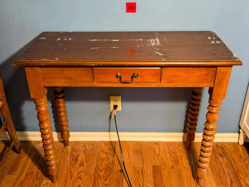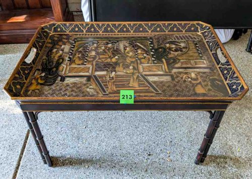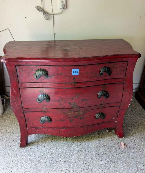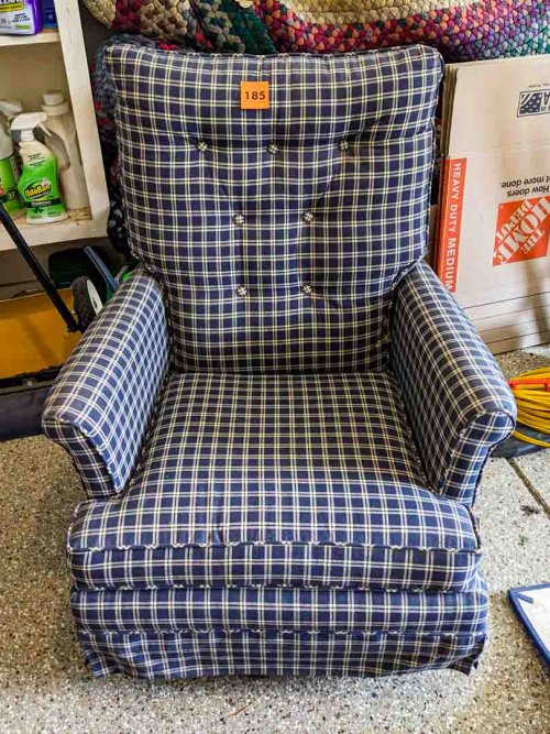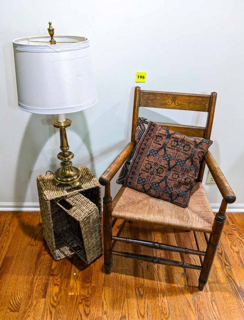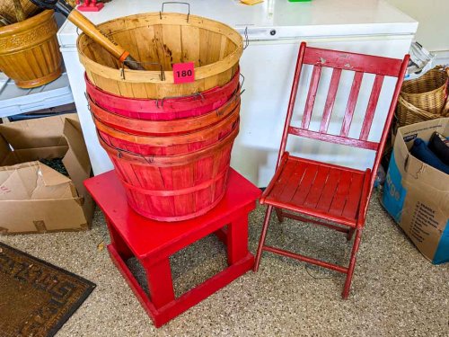 180. (5) Bushel Baskets + Red Accent Table + Folding Chair