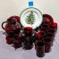 304. Ruby Red Glass Candlesticks + Glasses with Carrier + Bowl