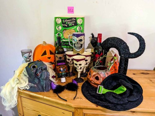 352. Halloween Mask + Goblets + Cat + Jack O Lantern + Decor